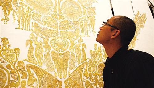 陜西非遺項目華縣皮影制作技藝的代表性傳承人汪天穩則與另一位參展藝術家鄔建安相識已久。十多年前,還在讀研究生的鄔建安已和汪天穩結識。兩人第一次見面后,就決定要一起做一些皮影作品。2015年,兩人合作展覽“化生:《白蛇傳》的古本與今相”,就是用當代視覺藝術創作的觀念與形態,結合傳統皮影的樣式語言講述了《白蛇傳》的故事。鄔建安曾說:“這是依托傳統皮影語言而作的當代藝術創作。它不是傳統的,而是當代的,不再是皮影,而是使用傳統皮影的工藝去創作全新的當代藝術作品。”