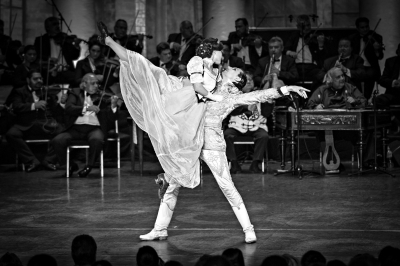 匈牙利有兩大文化國寶,一是民族舞,二是吉普賽音樂。此次演出,匈牙利的這兩大國寶將同臺競艷。為《茜茜公主》擔任伴奏的是匈牙利頂級樂團——布達佩斯吉普賽交響樂團的藝術(shù)家。該樂團被譽為“匈牙利音樂博物館”,又被稱為“百人小提琴樂團”,他們雖有龐大的樂隊編制,但沒有打擊樂組、銅管組及木管組,而擁有總量超過100把的小提琴、大提琴、低音提琴,也是匈牙利乃至歐洲唯一一個可以同時演奏傳統(tǒng)吉普賽音樂、猶太音樂及古典作品的交響樂團。