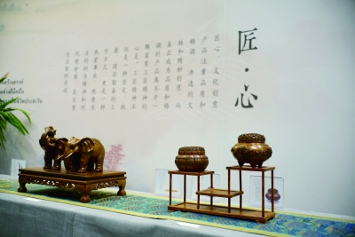 在曼谷展覽現(xiàn)場(chǎng),當(dāng)精美的文化創(chuàng)意產(chǎn)品一亮相,就吸引了泰國(guó)當(dāng)?shù)孛癖姷臐夂衽d趣,活動(dòng)現(xiàn)場(chǎng)氣氛熱烈,泰國(guó)觀眾既為文創(chuàng)產(chǎn)品體現(xiàn)的深厚中國(guó)文化所打動(dòng),又為文創(chuàng)產(chǎn)品的精巧構(gòu)思所折服。
