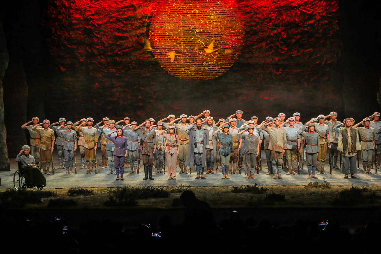 十年磨礪,從首秀到復排,《雁叫長空》通過舞臺,讓長征變成了看得見、摸得著的愛黨愛國教育,散發著強大的精神魅力。無論是在中共中央黨校、國防大學,或是在蘇州參加第十屆中國戲劇節,或是在學校、部隊,每一次演出,都給觀眾尤其是年輕人帶來深深的感動,這恰恰證明了紅色文化有穿透人心的力量。