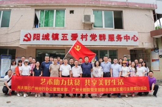 6月17日,廣州大劇院黨支部黨員作為踐行"兩山論"理論的市民參與了廣東廣播電視臺(tái)廣東衛(wèi)視頻道大型通俗理論節(jié)目《為有源頭活水來》策劃的首期節(jié)目《綠水青山就是金山銀山》錄制;7月1日下午,廣州大劇院黨支部與中共廣東音樂曲藝團(tuán)有限公司支部委員會(huì)、中共廣東珠影樂團(tuán)有限公司支部委員會(huì)在《紅色中國粵韻飛揚(yáng)》廣東音樂精品音樂會(huì)演出前舉辦重溫入黨誓詞活動(dòng);7月4日,廣州大劇院黨支部聯(lián)合光大銀行廣州分行辦公室黨支部牽手共建,前往清遠(yuǎn)市陽山縣五愛村,開展"藝術(shù)助力扶貧,共享美好生活"聯(lián)合共建五愛行主題黨日活動(dòng)。