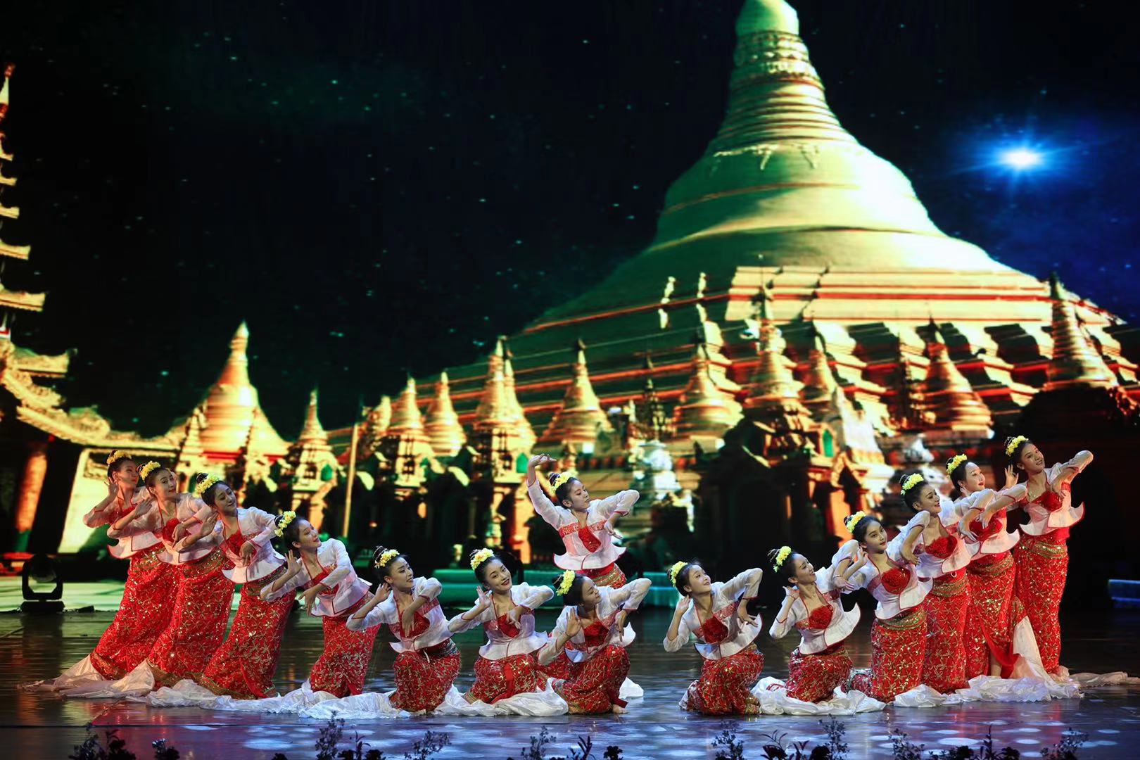 馬來西亞流行的民間舞蹈《扎賓》是當?shù)鼐用竦墓?jié)日舞蹈。廣西藝術(shù)學院的演員們身著馬來西亞民族服裝,在舞臺上跳起“扎賓”舞,向到場的來賓傳遞出歡樂祥和的氣氛。緬甸舞蹈《木偶舞》是緬甸歷史悠久的傳統(tǒng)舞蹈,深受當?shù)厝嗣竦南矏邸D九嘉柰ㄟ^人的肢體來模仿大自然中的動物等形態(tài),詼諧可愛,云南演藝股份有限公司的演員們演繹了這部緬甸經(jīng)典藝術(shù)作品,展現(xiàn)中緬兩國藝術(shù)交流融合、互相借鑒的和諧之美。