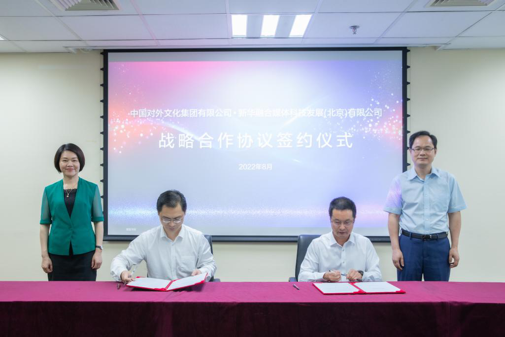 8月2日,新華融媒科技公司與中國對外文化集團有限公司在北京舉行戰略合作簽約儀式,以“美麗中國·我的家鄉”融媒作品眾創行動項目為起點,共同創作推廣優秀文化產品,攜手推動技術賦能文化傳播。