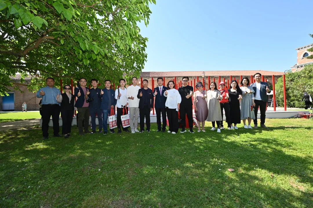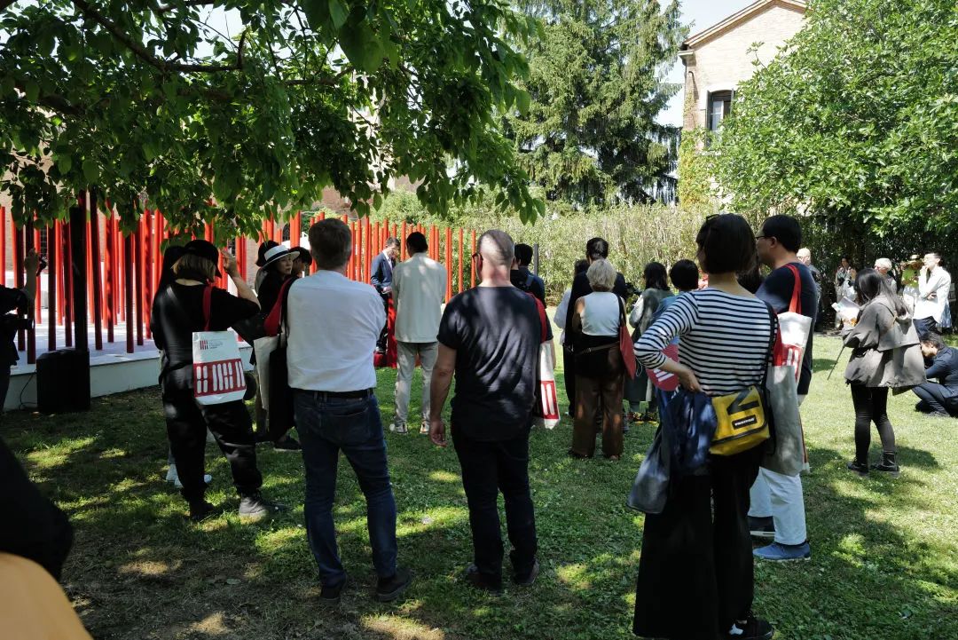 ?5月22日,風和日麗,綠草青青,在威尼斯經歷了連日陰雨之后,第18屆威尼斯國際建筑雙年展中國國家館展覽迎來了開館活動。來自策展團隊、承辦方、支持方等各方代表及參展建筑師、藝術家等歡聚一堂,共同慶祝中國國家館開館。