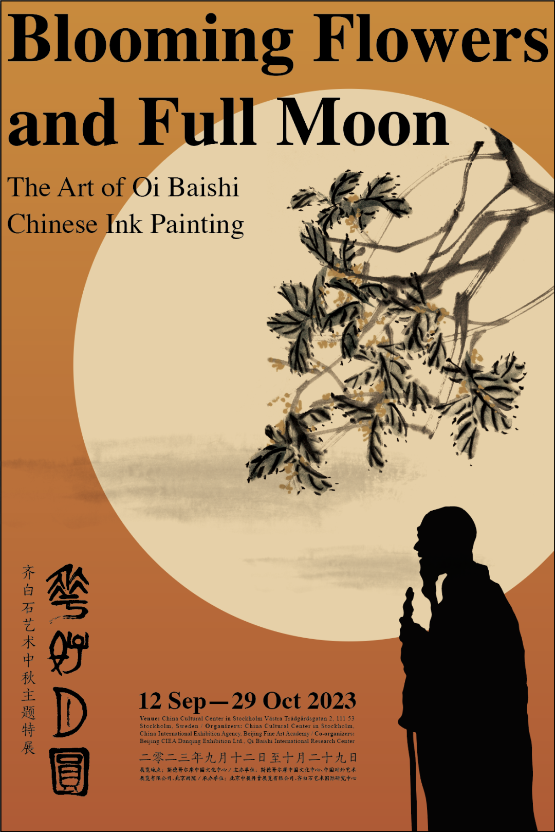 齊白石在中國是最廣為人知和深受喜愛的藝術家,齊白石藝術是中國文化的代表性名片之一,2023-2024年北京畫院啟動了“紀念齊白石誕辰160周年”全球活動。2023年9月12日至10月27日,斯德哥爾摩中國文化中心、北京畫院、中國對外藝術展覽有限公司主辦,齊白石藝術國際研究中心、北京中展丹青展覽有限公司承辦的“花好月圓——齊白石藝術中秋主題特展”在斯德哥爾摩中國文化中心舉辦。此次活動是斯德哥爾摩中國文化中心2023年“天涯共此時——中秋活動”的重要特展。此次展覽不僅有利于加深各國人民對中國文化的認識和理解,更可以促進國際藝術文化的共享與交流。
