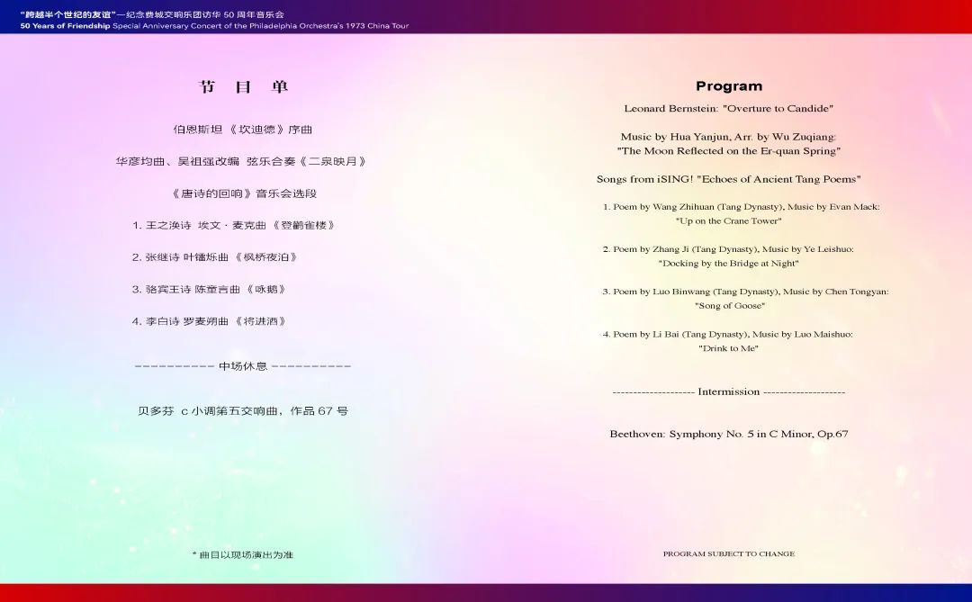 2023年,“跨越半個(gè)世紀(jì)的友誼”紀(jì)念費(fèi)城交響樂團(tuán)訪華50周年音樂會(huì)節(jié)目單。
