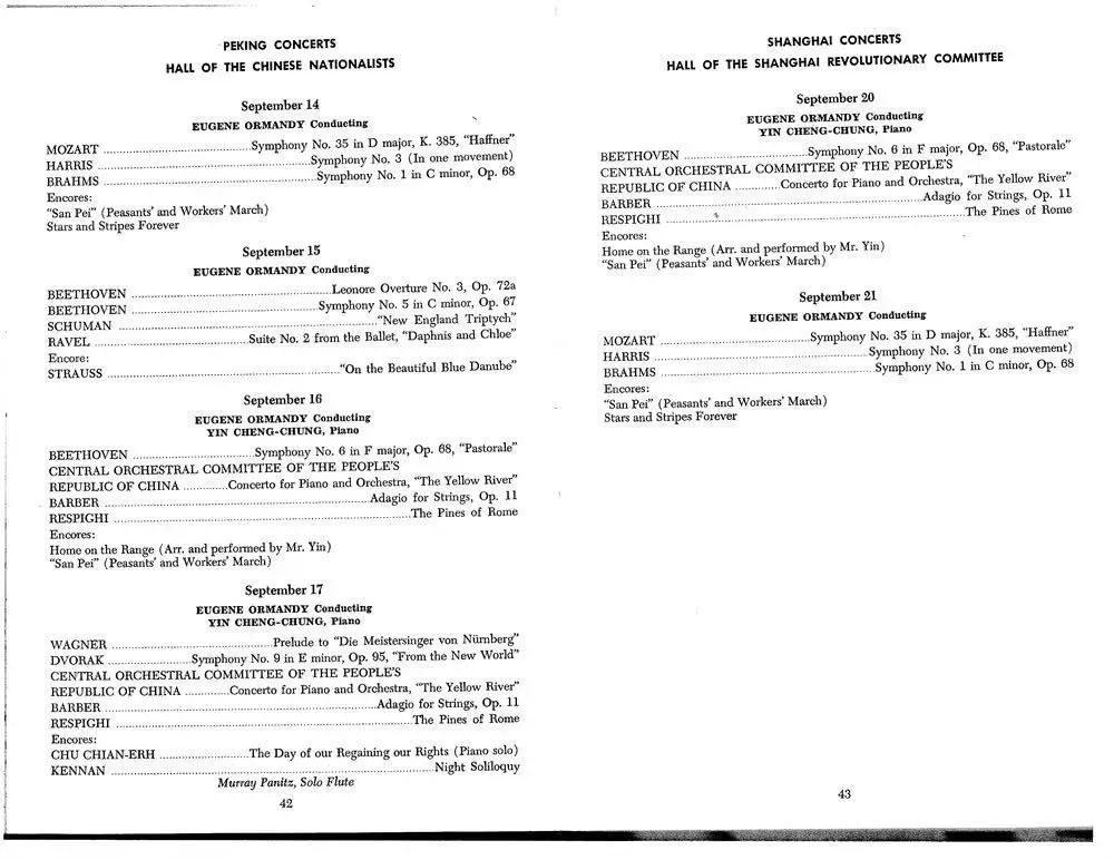 1973年,費(fèi)城交響樂團(tuán)來華,在北京民族文化宮和上海市府大禮堂的演出節(jié)目單。