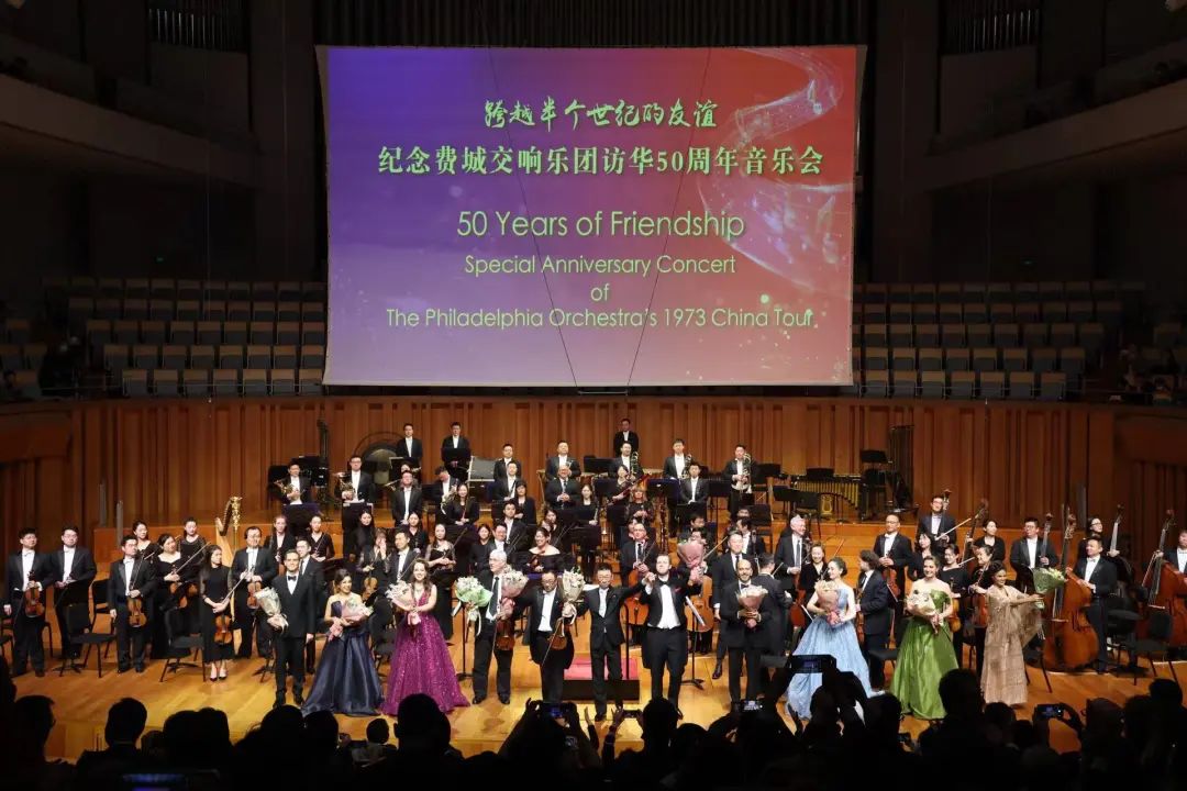 11月10日晚,“跨越半個(gè)世紀(jì)的友誼”紀(jì)念費(fèi)城交響樂團(tuán)訪華50周年音樂會(huì),在北京中國(guó)國(guó)家大劇院舉行。本次音樂會(huì)由文化和旅游部主辦,中國(guó)對(duì)外文化交流協(xié)會(huì)、中國(guó)人民對(duì)外友好協(xié)會(huì)、美國(guó)國(guó)務(wù)院支持,中國(guó)對(duì)外文化集團(tuán)有限公司承辦,費(fèi)城交響樂團(tuán)(以下部分簡(jiǎn)稱費(fèi)交)、中國(guó)交響樂團(tuán)、美國(guó)亞裔表演藝術(shù)中心共同演出。