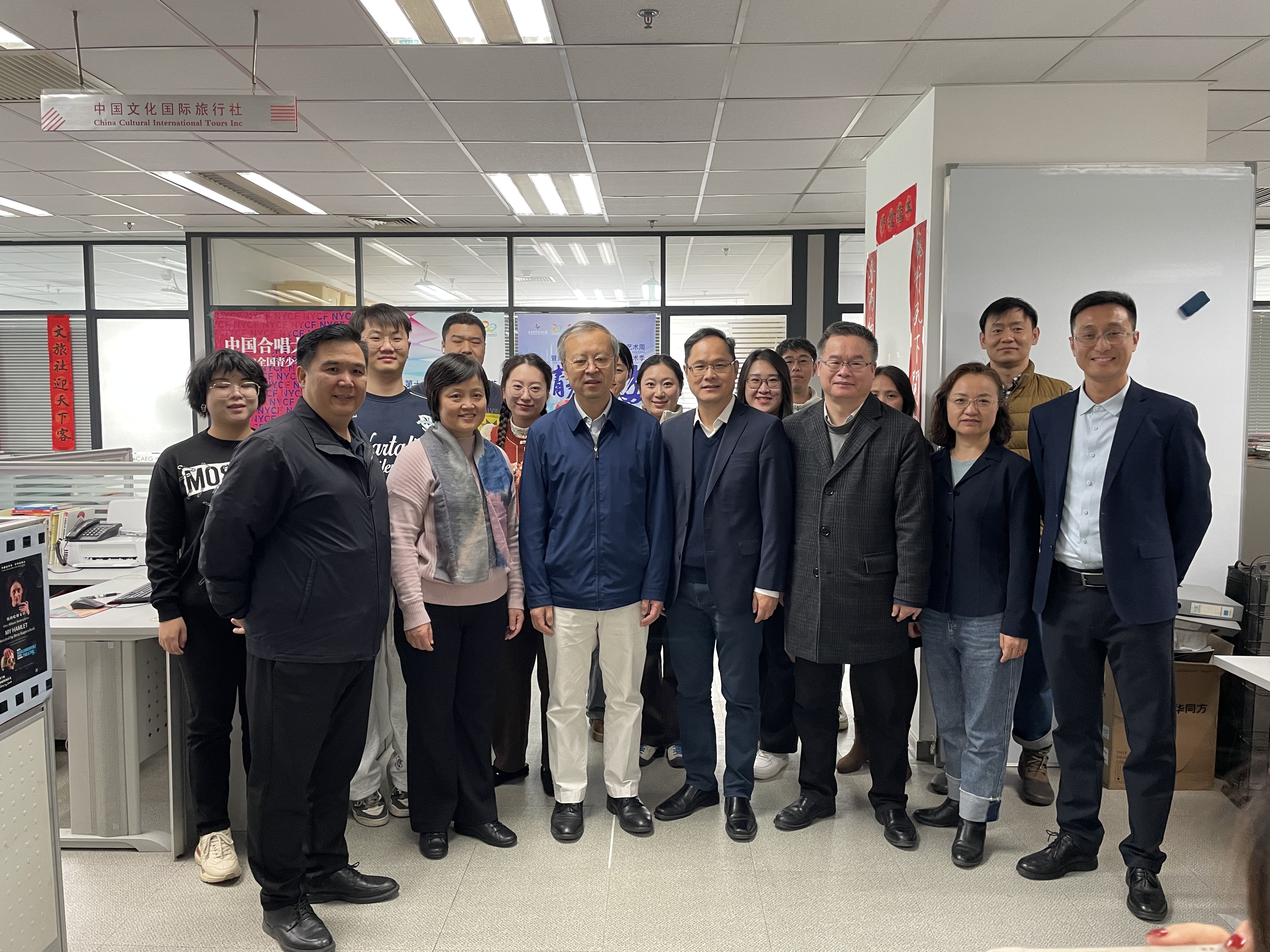 在蛇年新春佳節即將來臨之際,1月26日,紫荊文化集團總經理文宏武來到中國對外文化集團有限公司,代表集團黨委和許正中董事長向全體員工送上節日的祝福與關懷。紫荊文化集團副總經理薛麗軍參加走訪慰問。