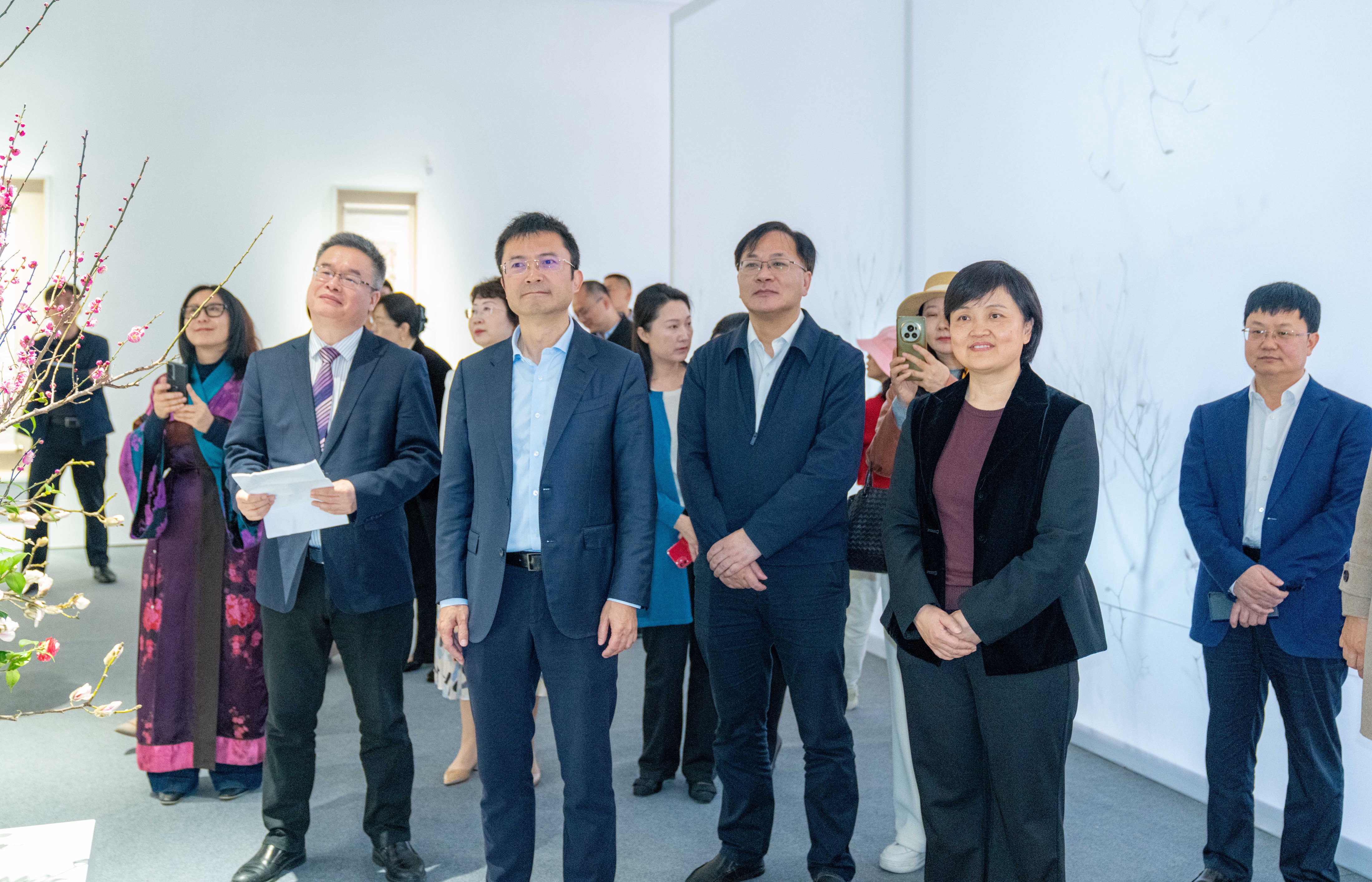 中國對外文化集團攜十六幅中國近現代大師的詠春佳作,在深圳城市規劃與當代藝術館舉辦主題為「春訊——中國近現代大師的春天」典藏展。開幕式現場春意盎然,氣氛熱烈而祥和。紫荊文化集團副總經理薛麗軍、深圳市委宣傳部常務副部長曾相萊,福田區委書記黃偉,福田區委常委、宣傳部部長章海蓉,福田區文廣旅體局黨組書記、局長陳國龍,前海合作區黨工委副書記、前海管理局黨組成員梁珂,光明區委書記蔡穎,光明區文廣旅體局黨組書記、局長包小紅,龍華區文廣旅體局副局長陳海明,鹽田區委常委、宣傳部部長張玉領,寶安區委宣傳部副部長孫簫韻,寶安區文廣旅體局副局長張瓊等出席活動。